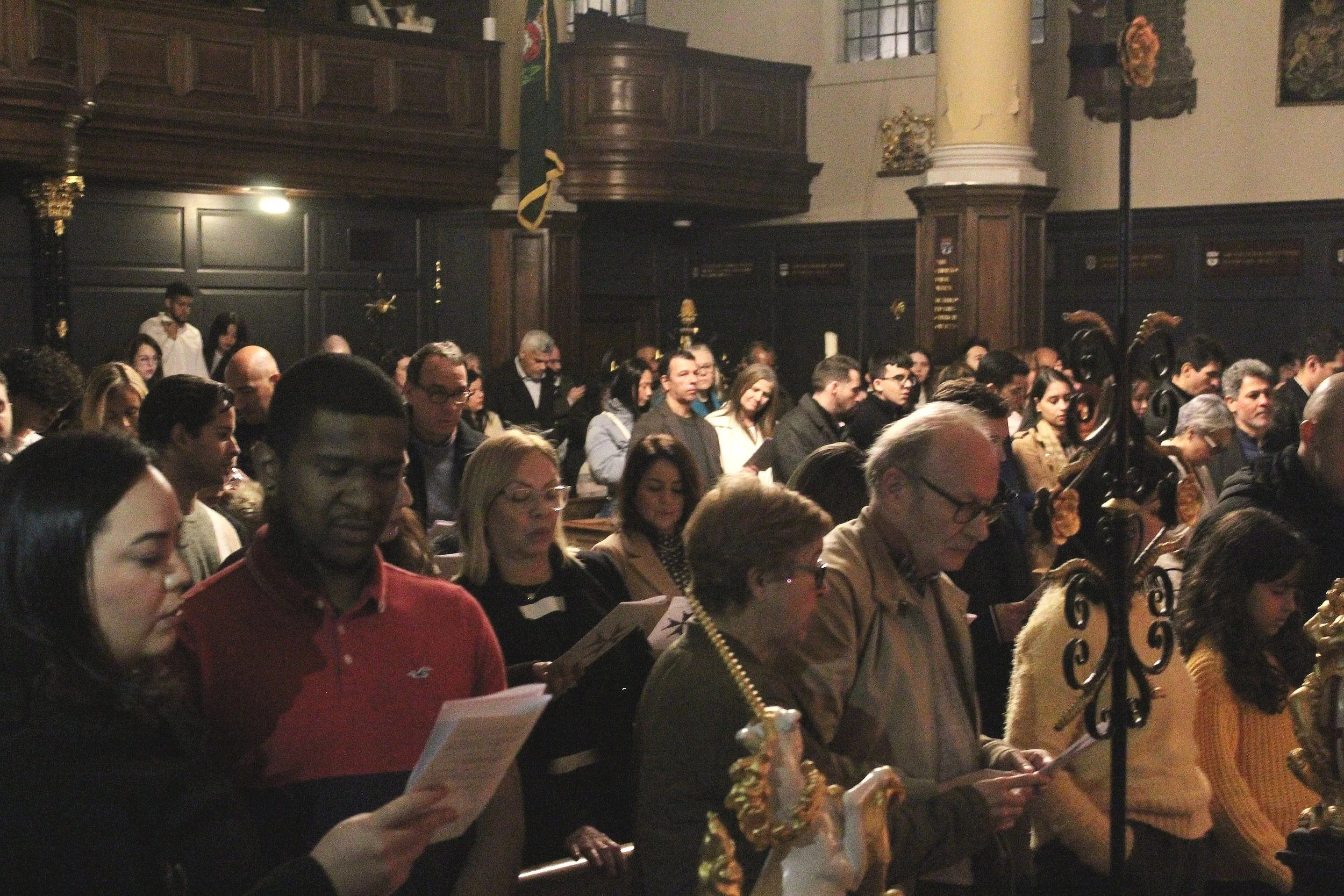 We are grateful to meet for worship at St. James Garlickhythe, a historic Anglican parish church in the City of London. Known as “Wren’s Lantern” due to the original profusion of windows that fill the space with natural light, St. James is one of the many churches rebuilt by Sir Christopher Wren after the Great Fire of London.